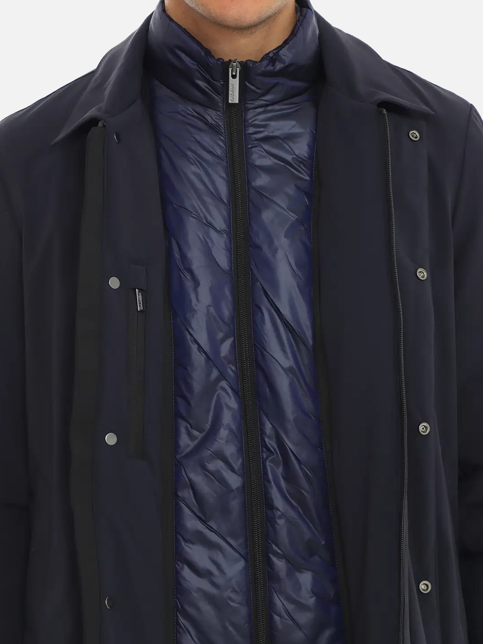 • Chiusura con zip a doppio cursore coperta da patta con bottoni automatici