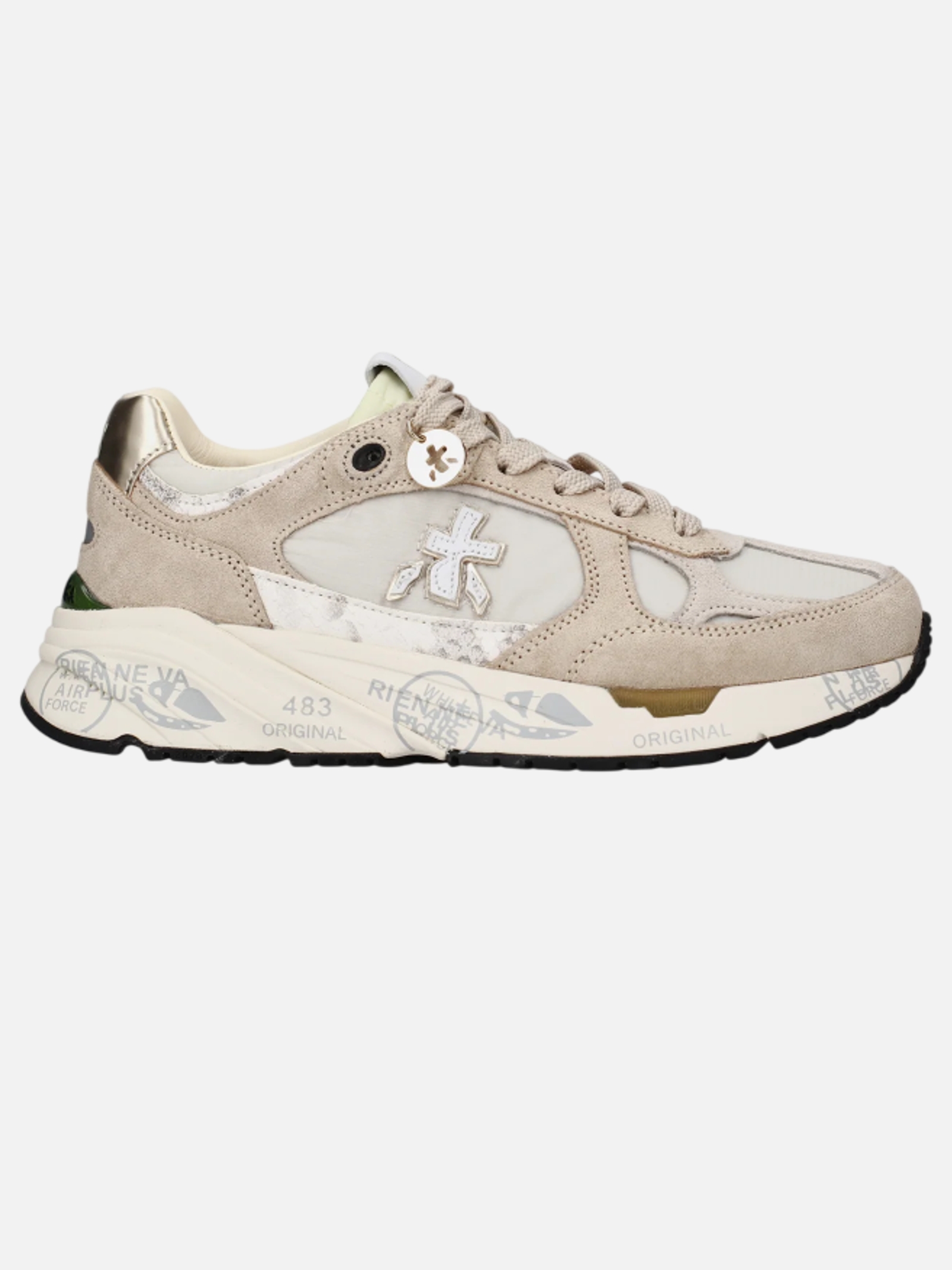 • Risentono del mood nineties, combinano una silhouette moderna con materiali pregiati e dettagli vivaci. Fedeli al design Premiata, ne conservano tutti gli elementi chiave: il logo che decora i laterali, la scritta MASE che si evince sull'etichetta, trattamenti e dettagli a contrasto che ne risaltano la visibilità.